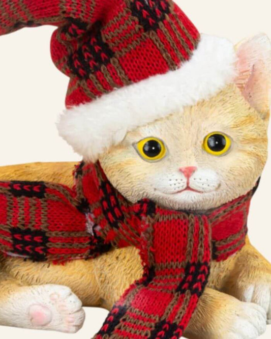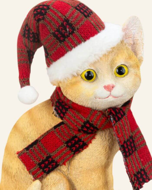 Cat Sitting with Hat and Scarf
