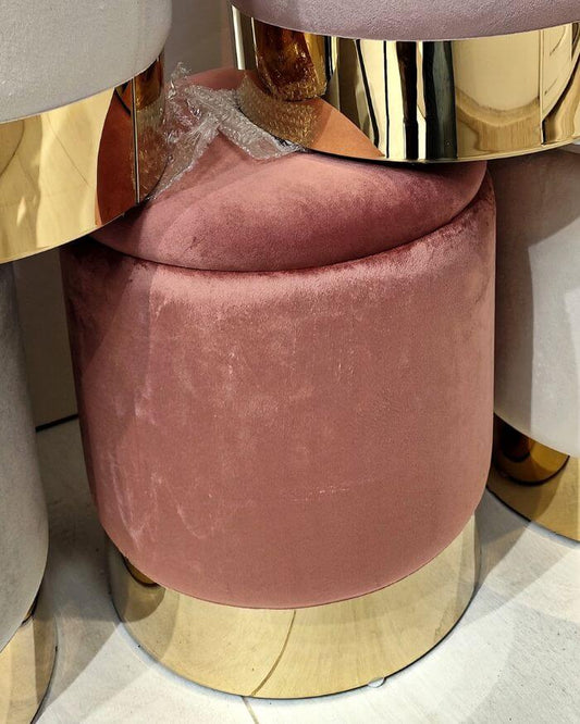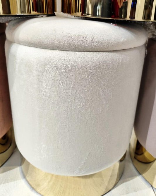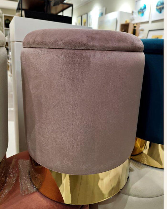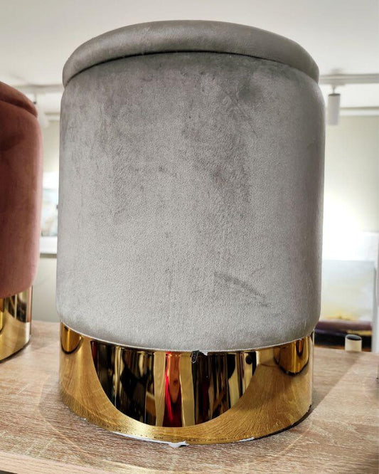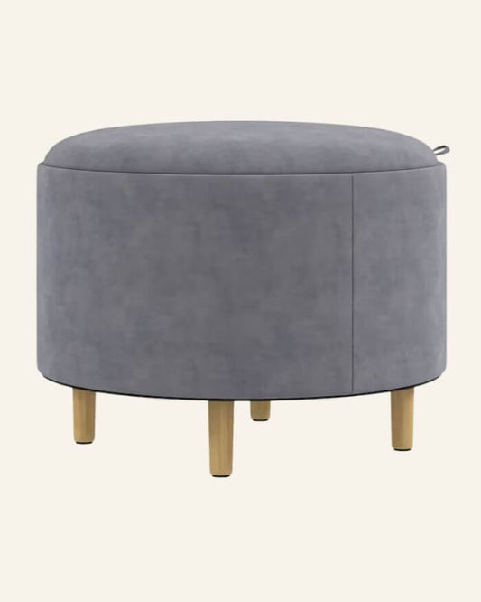 Velvet Storage Pouf with Flip Top Tray in Grey